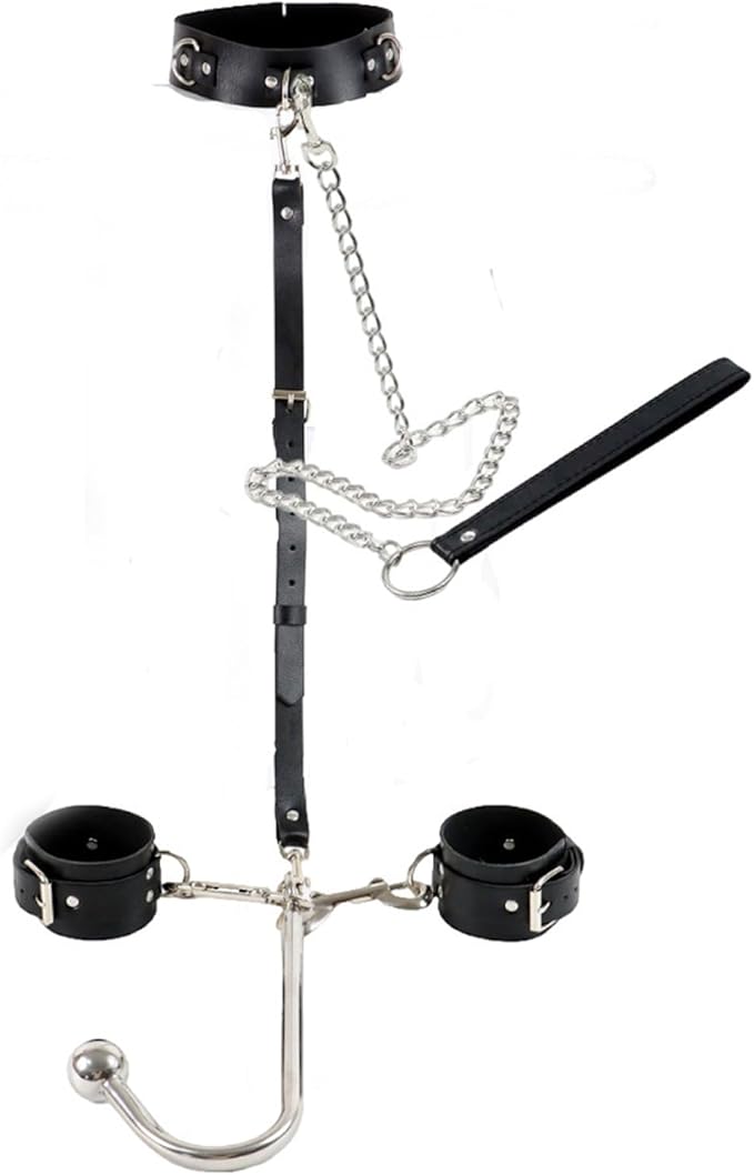 【Sturdy Material】Unleash your deepest desires with our premium PU leather and stainless-steel hook bondage set. Featuring an adjustable collar and handcuffs, this BDSM Sex Bondage kit is designed for exhilarating, comfortable restraint play for couples looking to explore new sensations.